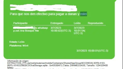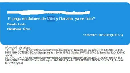 ¿El pago en dólares de Milei y Danann ya se hizo? En agosto de 2023, la carrera presidencial no le impedía a Javier Milei continuar con los negocios vinculados al mundo cripto junto a Mauricio Novelli, su socio desde hacía varios años. No solo cobraba por las clases en la academia de negocios del “trader” sino por la promoción de mensajes en la red X (ex Twitter), un modus operandi similar al que quedó en evidencia con la estafa $LIBRA. Por los mensajes que se recuperaron del teléfono celular de Novelli a partir de una pericia de la Dirección General de Investigaciones y Apoyo Tecnológico a la Investigación Penal (DATIP), ahora se sabe que Milei recibía pagos en efectivo y transferencias bancarias a través de una cuenta a nombre de Karina Milei.